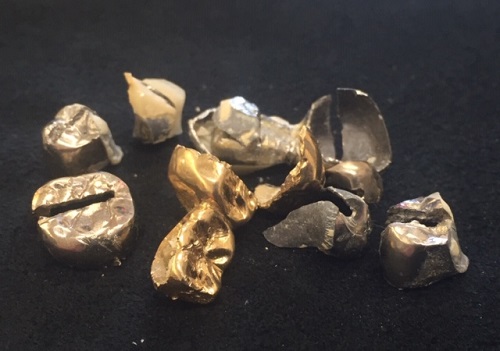 貴金属 金歯の買取です。金歯には刻印は当然ながらありませんが、色をルーペでよく見ていくと結構分るものですが、金色が薄い物は18金以下の比重で間違いないです。買取するお店もあれば買取しないお店もあります。これは社長、もしくは店長の裁量で決めているのです。