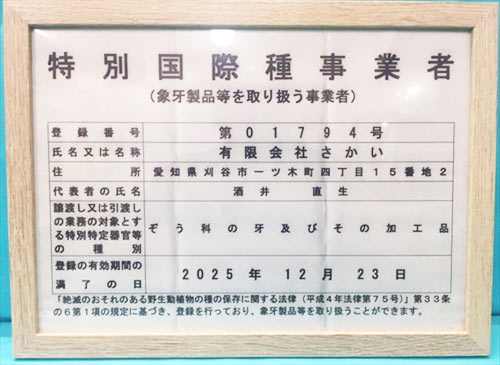 「特別国際種事業者(正規象牙販売業者)」です![]() |