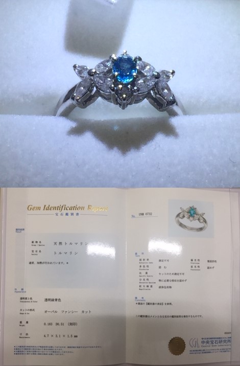参考例にはパライバトルマリンの指輪をアップしておりますが、