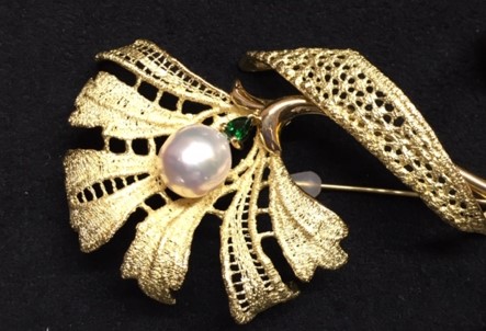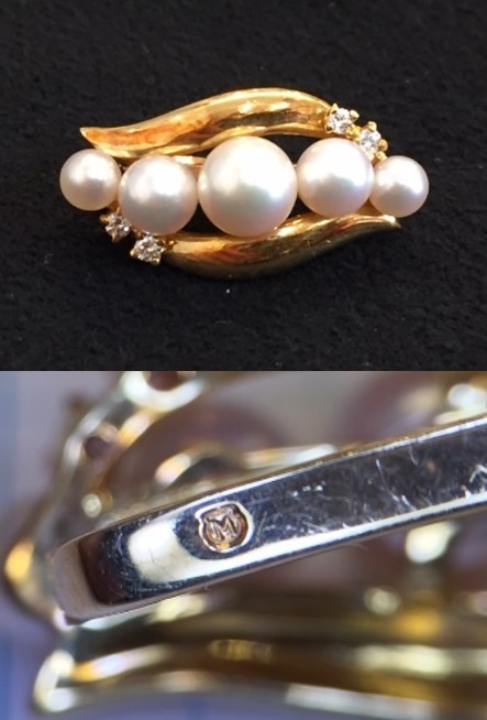 アコヤ貝でMはミキモトの頭文字をあしらった物です。