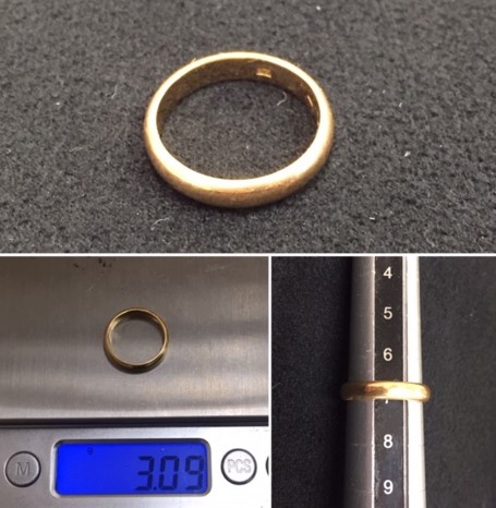 遺品整理などで必ずと言ってよいほど出てくる指輪です。品位は18金で3.1gで計算してみましょう。